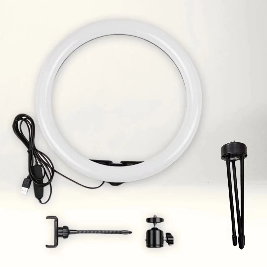 O ring light 8 conta com tripé, suporte para telefone celular, LED que de brilho ajustável para atender a todas as suas necessidades em diferentes ambientes,três modos de iluminação: luz quente, luz branca e luz branca quente e alimentação USB:trabalha com a maioria dos dispositivos que suportam portas USB (laptops, fontes de alimentação móveis, carregadores USB e etc.)